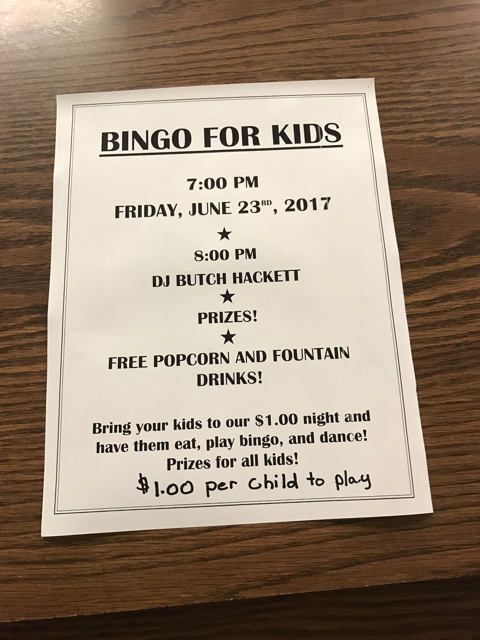 Bingo starts at 730 pm on weekdays and 830 pm on weekends. RULES FOR BINGO. Early Bird ticket drawing 5050 drawing and raffles.